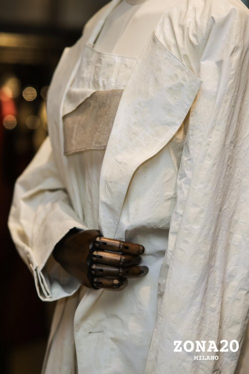 继于米兰历史地标Chiostro dei Pesci修道院开启关于“白”的哲思序章之后,ZONA20 MILANO 将这场静谧旅程延展至上海,在都市喧嚣中构筑一处可沉浸、可呼吸的内省空间,邀观者重返SPRING SUMMER 2026 米兰时装周发布的诗意现场——十五世纪修道院中,竖琴声轻绕回廊,每一套造型隐于垂落的白色帘幕之后,静待观者揭幕。此次预览不仅呈现全新2026春夏系列作品,更借由空间、光影与帘幕的精心重构,唤起对米兰现场的记忆与精神延续。品牌以独特的服装语言,邀请观者步入这片静谧白境,感受源自沉思的内省之力,开启一场关于记忆与重生的温柔冥想。